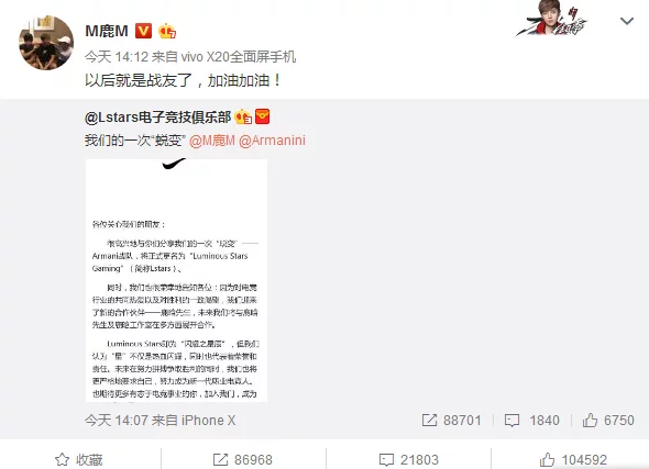 一、鹿晗成立吃鸡战队,虎牙绝地求生主播被直播封号100年明星吃鸡早已不是新鲜事,之前娱乐圈著名的网瘾少年陈赫就成立了一支绝地求生职业战队,名为SnakeTC,而最近另一位小鲜肉明星鹿晗也宣布与之前的Armani战队合作,成立了全新的Lstars职业战队,看来网瘾少年都喜欢扎堆啊。