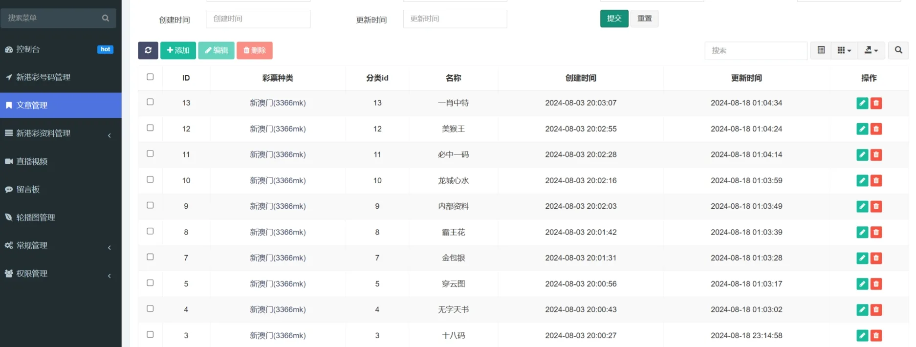 后台倒是显示有很多彩种,前端只有一个,编译后的没办法去修改,后台可以修改开奖、上传图库,感觉前端是阉割版