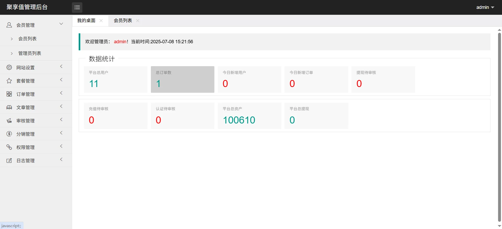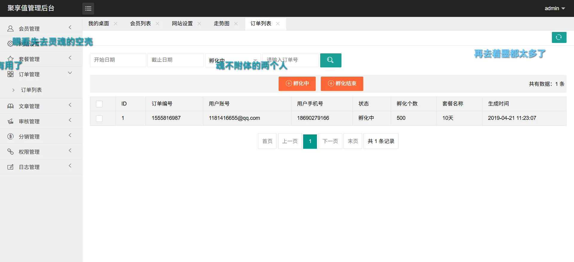 亲测管理后台有点添加用户会报错,添加用户的时候貌似某个字段为空了,数据库约束这个字段不能为空,所以这个自己手动去改下代码 或者设置允许该字段为空