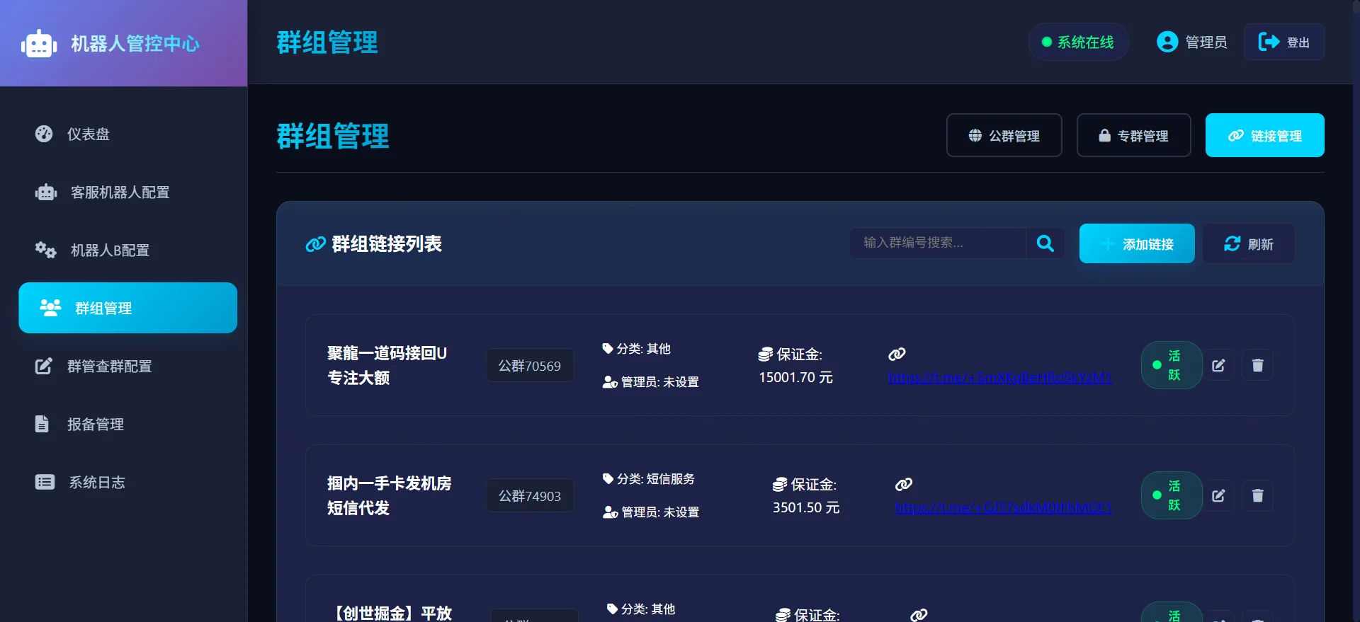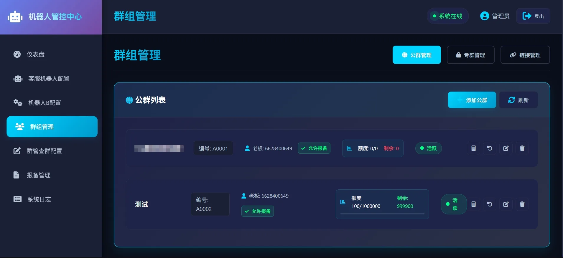 查询群组机器人和客服机器人的查群功能查询数据相通