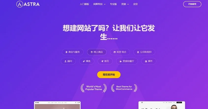 Astra是一款轻量级、漂亮的WordPress主题,在wordpress.org 官网下载量超过100万,多年下载量稳居第一名,全球超百万人使用它来搭建独立站。它可以用于搭建个人博客、作品集网站、企业网站、电商网站等各类网站,适合新手和经验丰富的开发者。