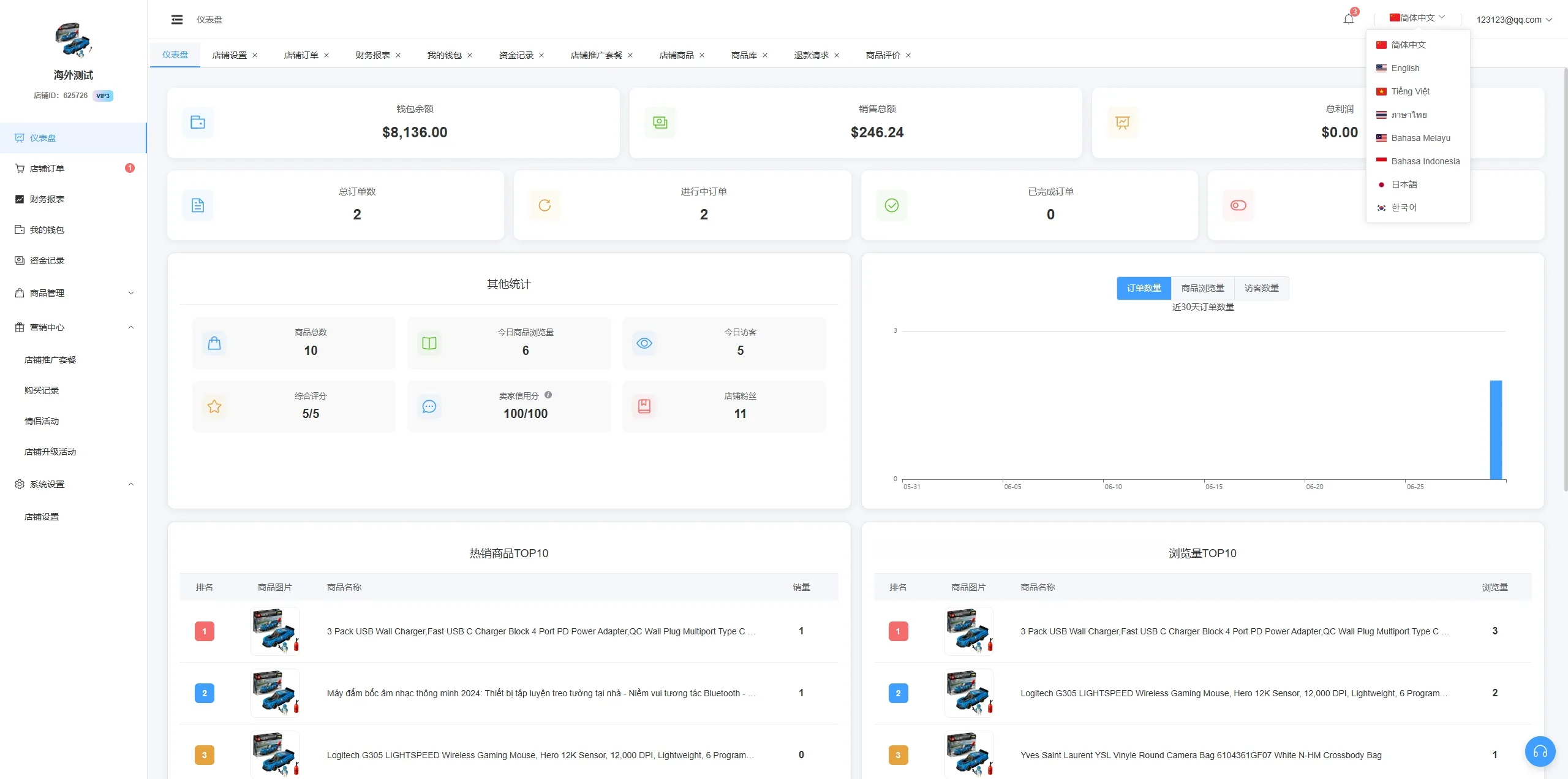 新版跨境电商系统/多语言商城/商家入驻/一键铺货后台下单