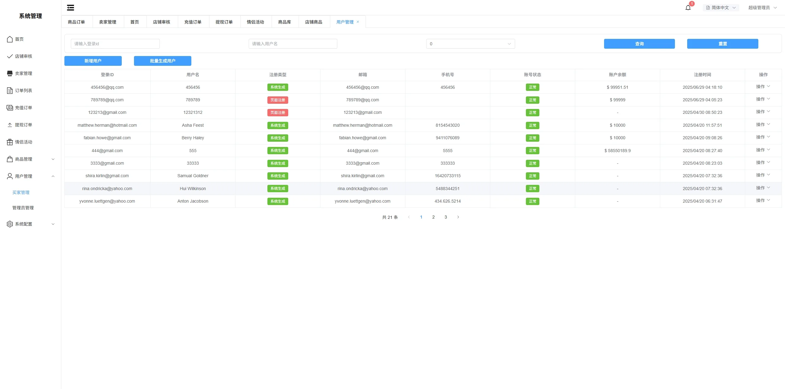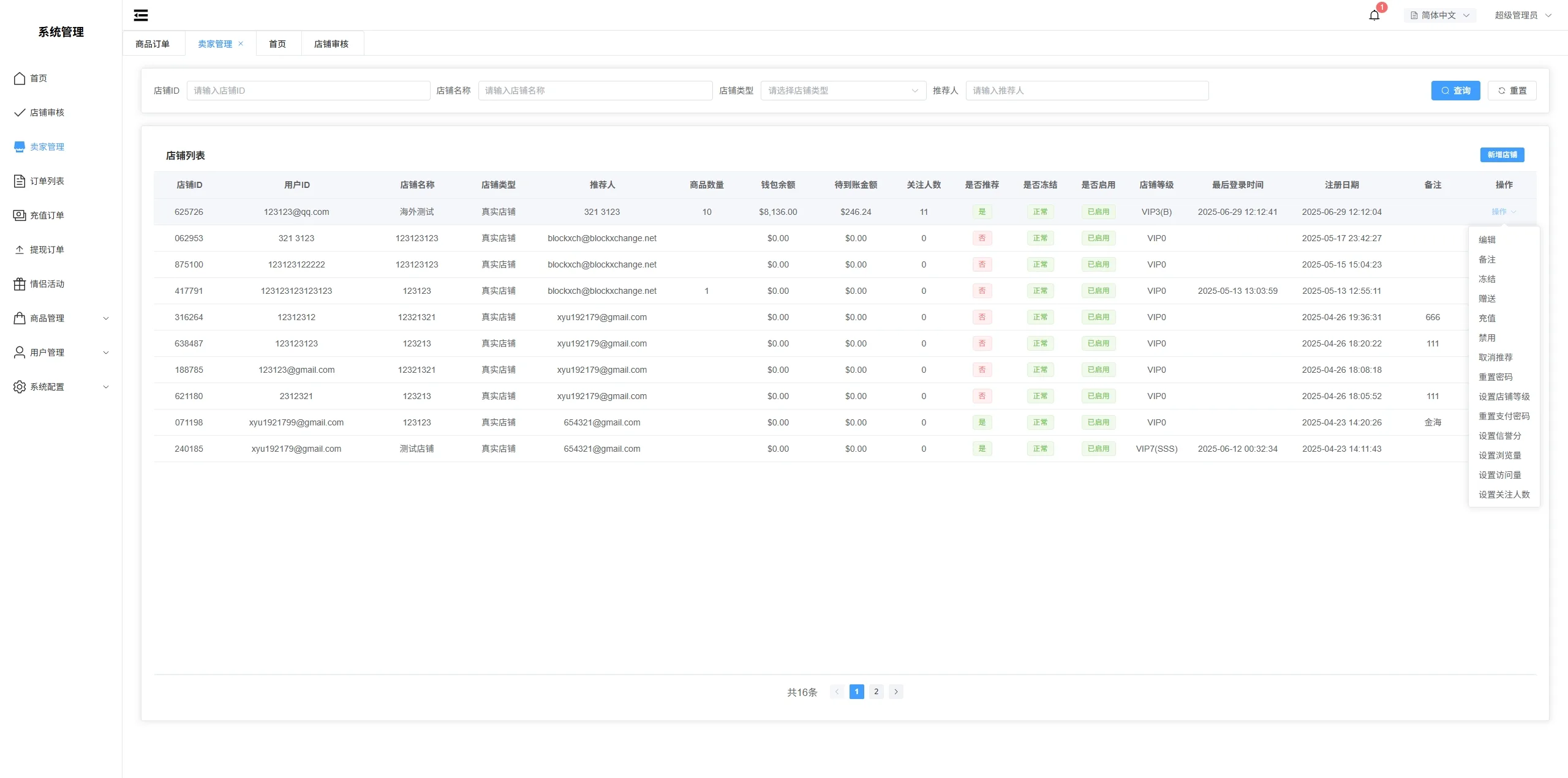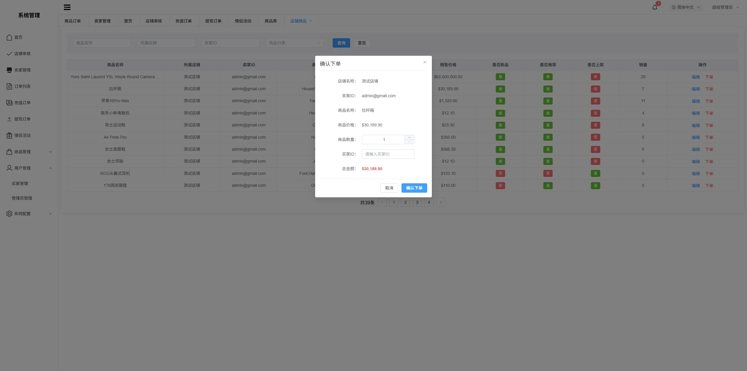 系统无商品需要自己添加,支持设置商户访问量,信誉分,关注人数,后台手动下单等功能