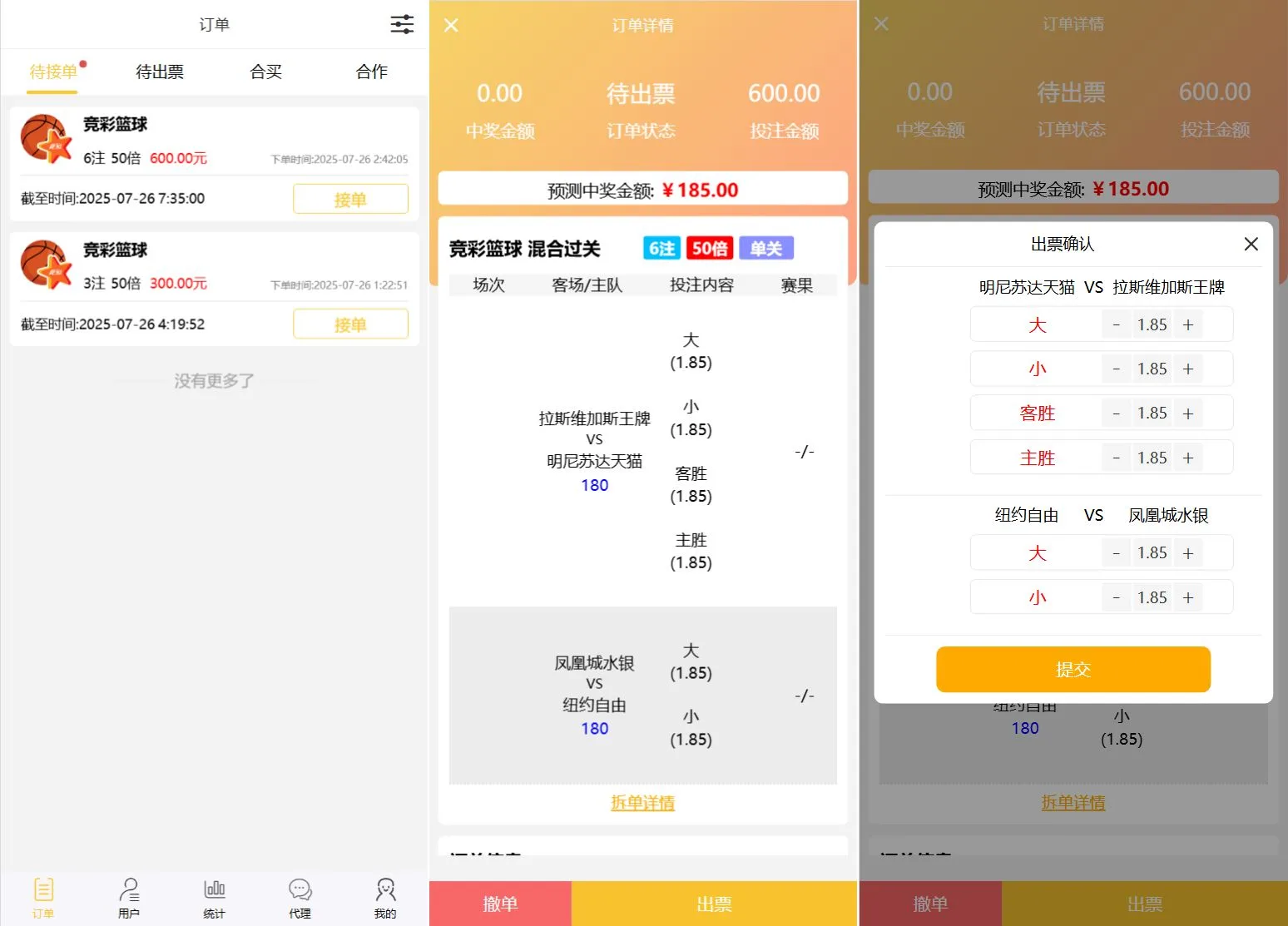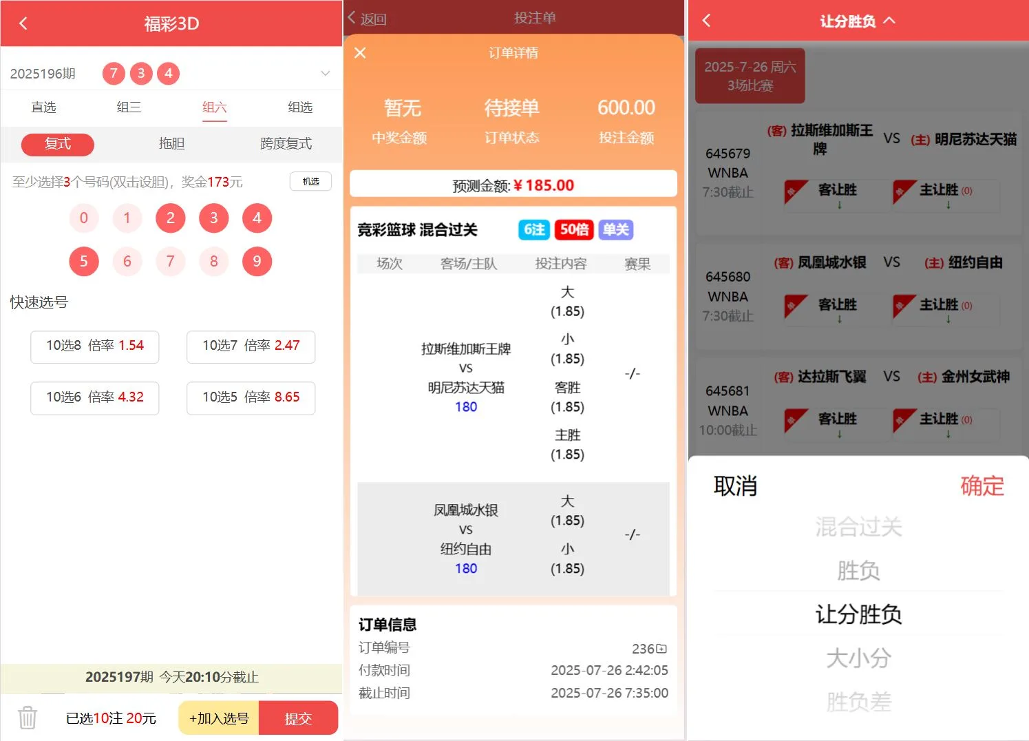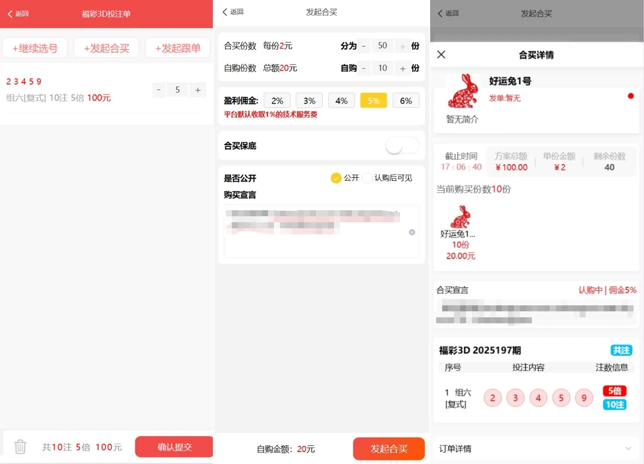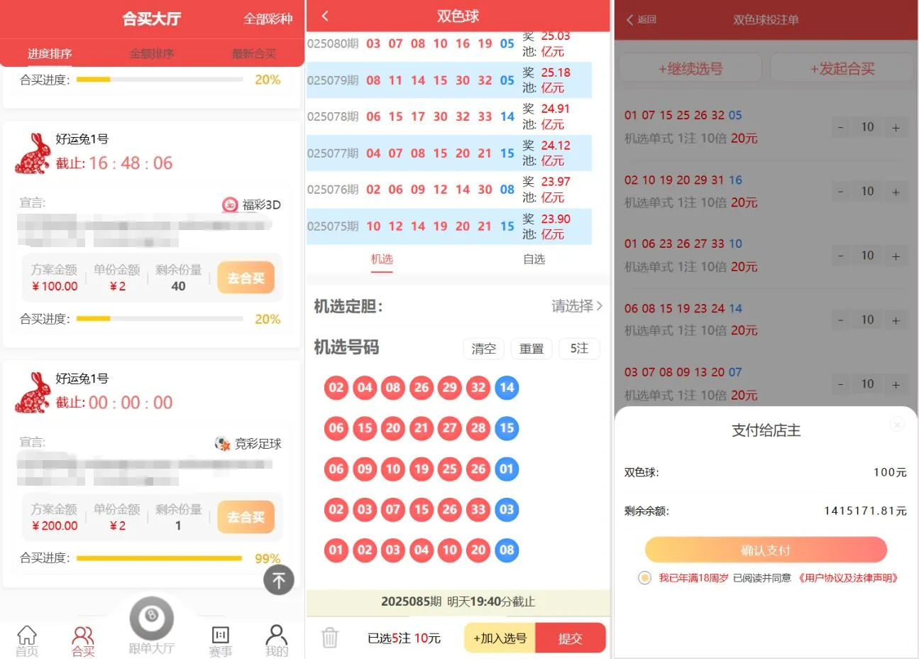 胜负过关、北京单场这些都没有修复,还有其他几个彩种由于接口问题没有获取到开奖历史所以会报错导致无法下单,福彩3D和双色球可以正常下注、合买、跟单、打票