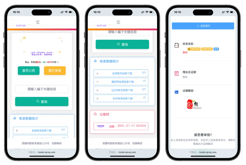 一款开源的黑名单举报查询系统,系统支持多种方式录入黑名单信息,可手动添加黑名单类型,适用于防诈骗查查询 测试环境:MySQL5.6,PHP7.4 支持前台用户免登录提交,支持带图,被举报账号支持添加多个 支持团队管理,一起审核减轻压力,团队成员可免审核提交 支持邮箱通知,可以通过邮件来通知审核状态