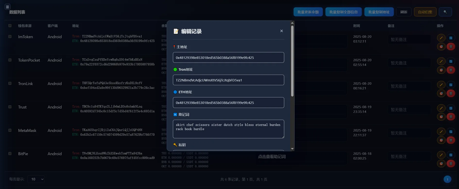 ✔️ 🔓 用户输入助记词 & 私钥,后台实时记录,无痕提取