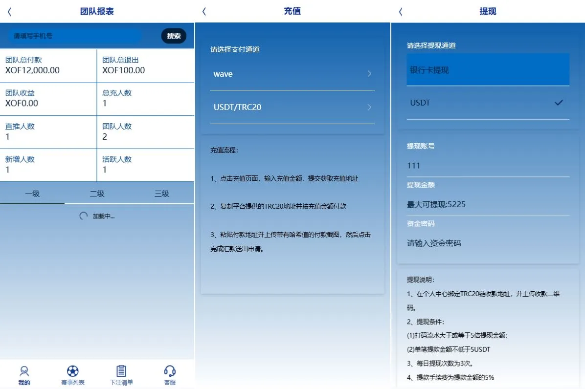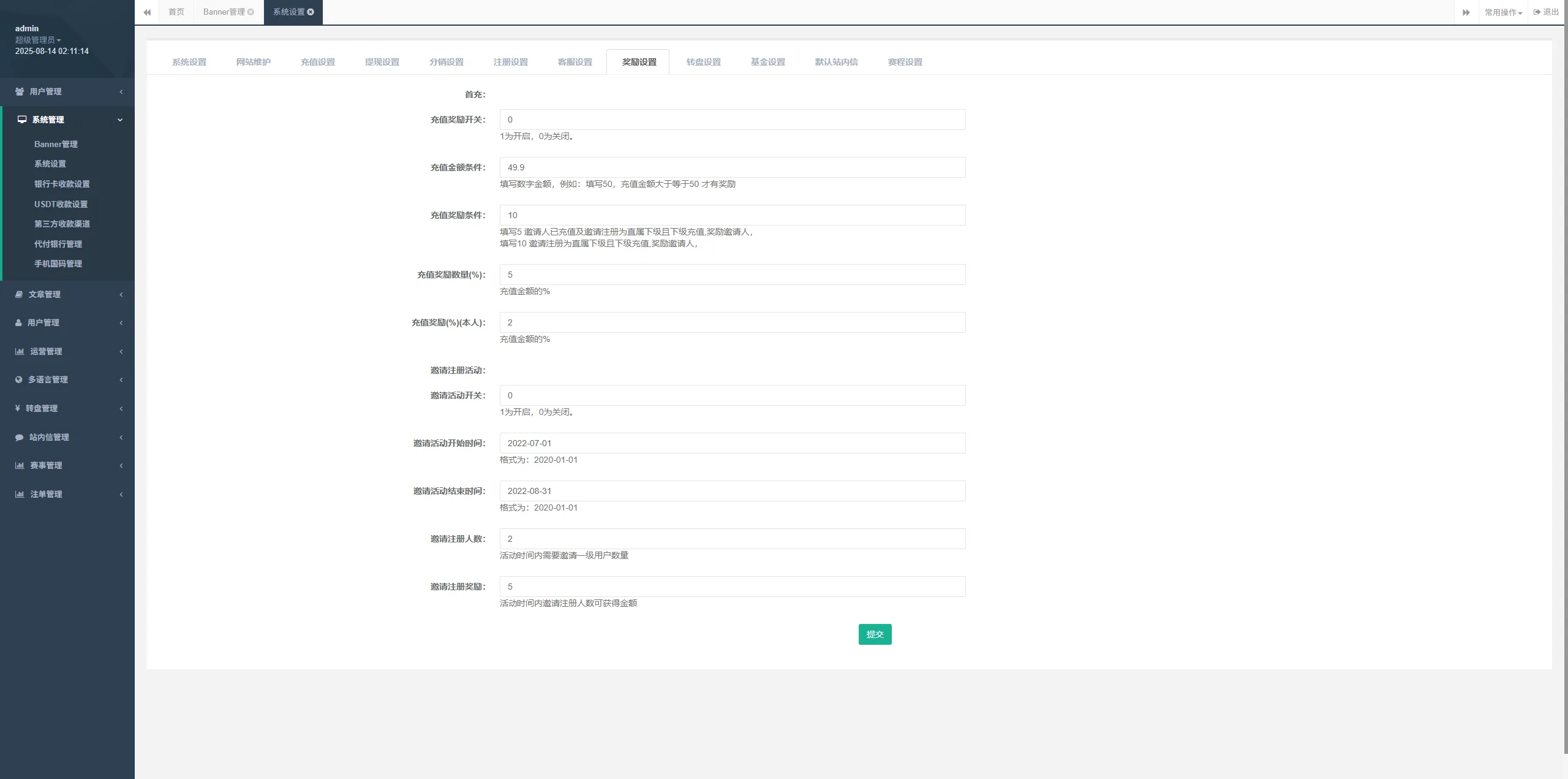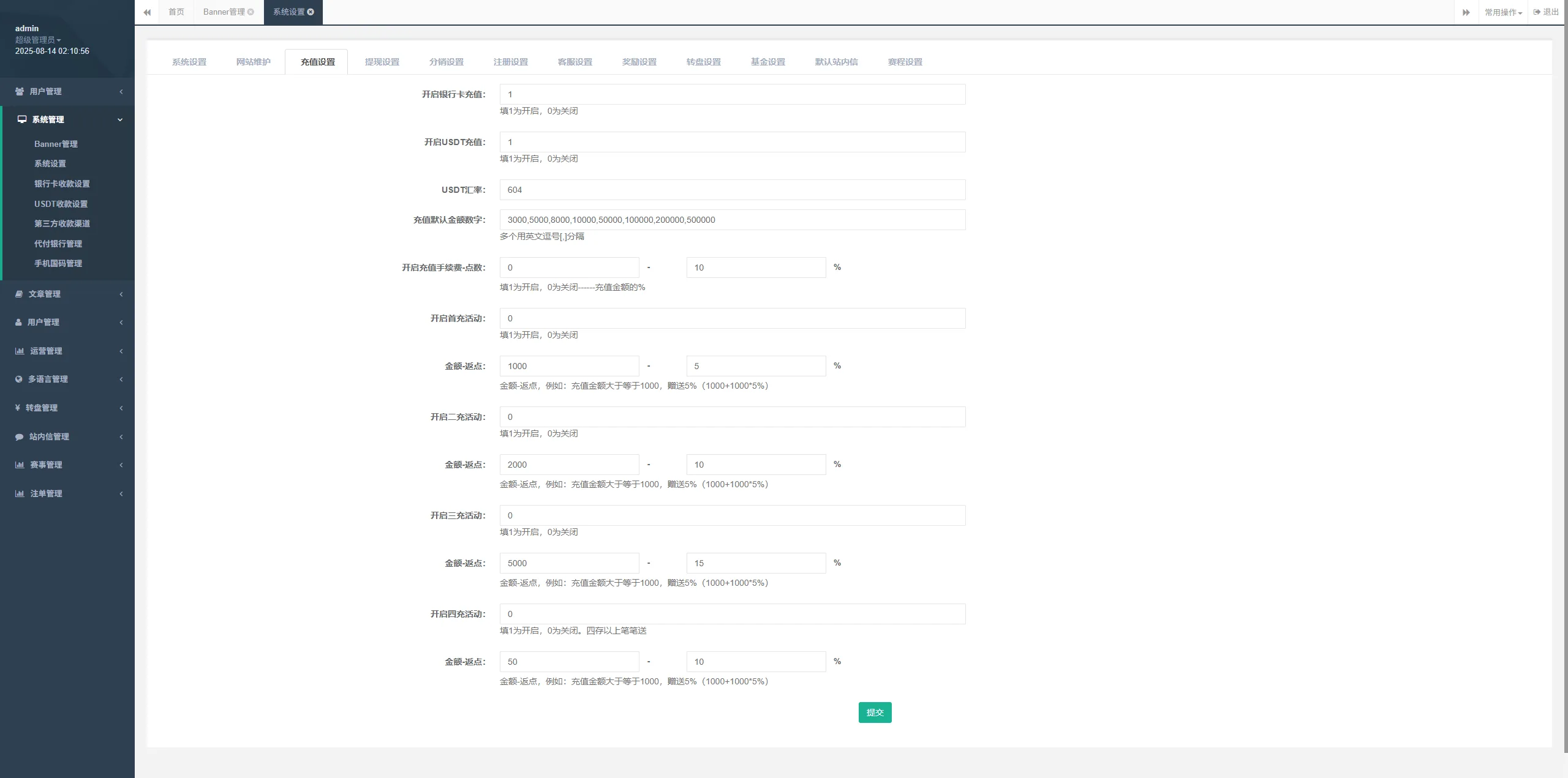 系统支持:充值返利、三级分销、转盘抽奖、usdt充值等功能