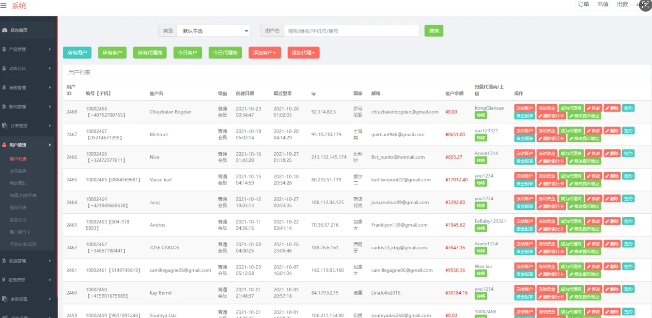 这套是别人全新仿的假盘系统,前端是html的,系统是多语言默认中文被注释的 系统模式就是批量发广告出去,付带账号密码,里边有余额