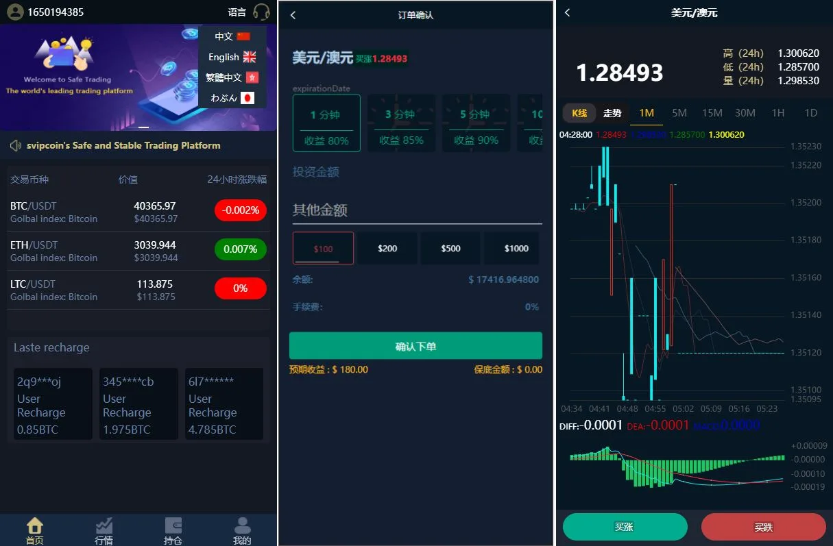 新版UI多语言微交易系统,带黄金外汇虚拟币产品交易 支持投资理财,自带内置客服系统,后台纯越南语