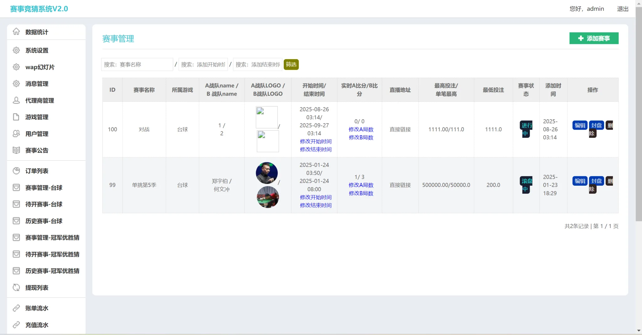 赛事自定义设置,也有冠军赛事,自定义赔率
