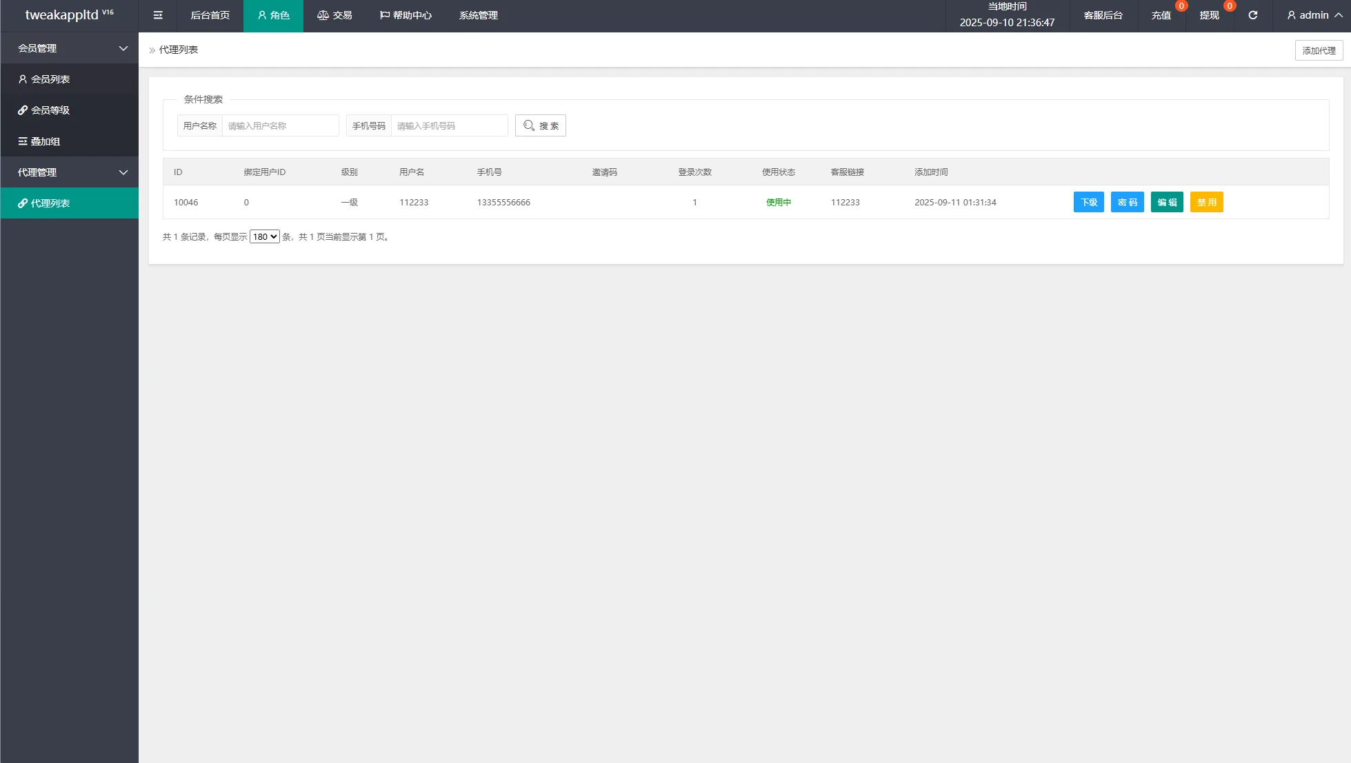 前端uniapp开发,代理VUE开发,后端thinkphp框架 独立代理后台,支持打针信用分等功能 玩法比较独特前端抢单需要后台或者代理后台点击付款