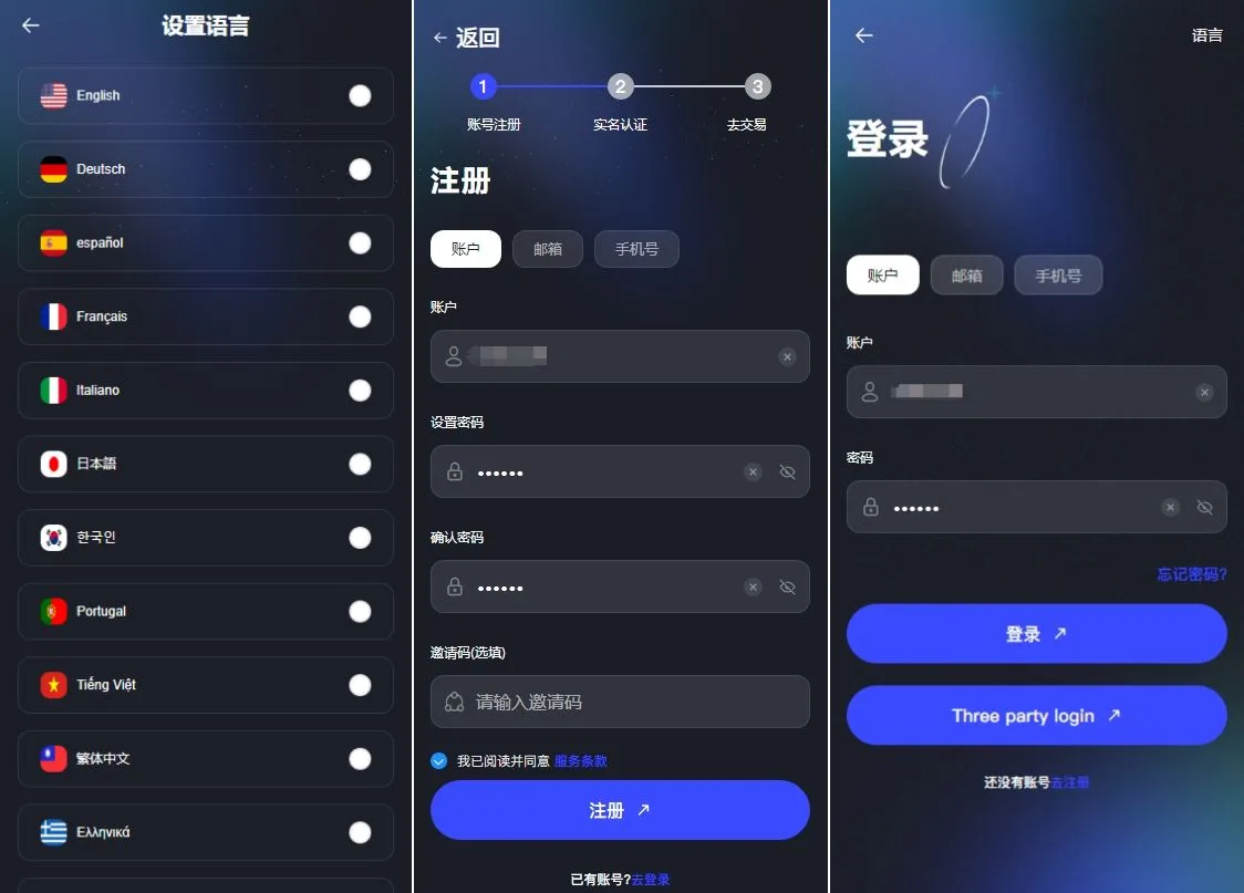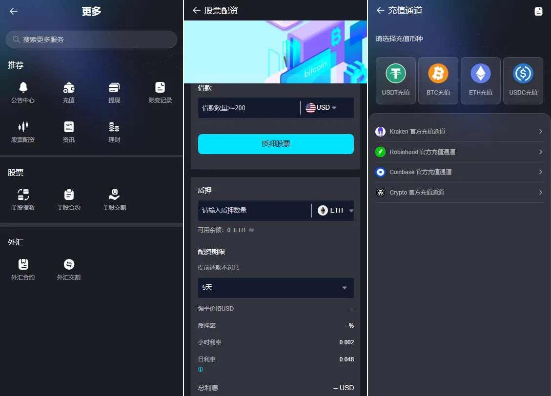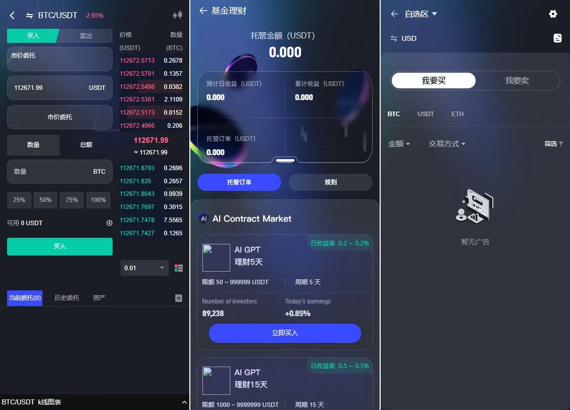 数字资产交易、投资理财、借贷、杠杆 币币交易 合约交易 期权交易 C2C AI量化理财 双币理财 VIP等级系统 钱包功能 DeFi理财 币种理财(...