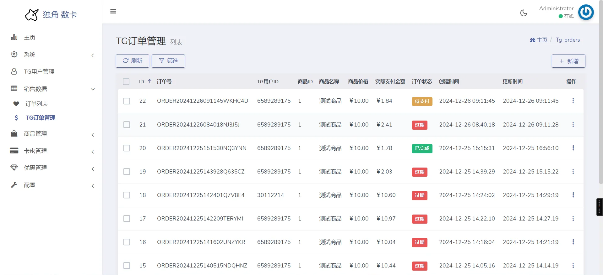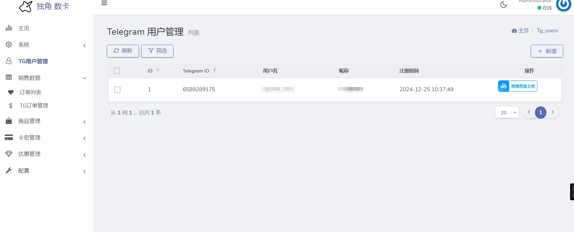 机器人端和独角数卡是共用的一个数据库,压缩包里面的独角数卡程序我二开过,添加了两个管理页面和数据库
