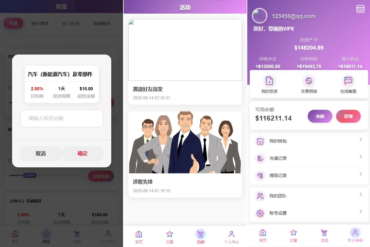 5多语言投资理财系统/新能源投资返利/海外投资众筹系统 资源下载下载价格4000 元VIP折扣包年VIP 9.5折终身VIP 9折立即购买498元即可开通永久会员 前端VUE开发,后端thinkphp开发全开源带教程 系统功能完善,前端多语言,系统产品后台可修改不限项目类型 原文链接:https://www.jocat.cn/archives/87047,转载请注明出处。 0 0