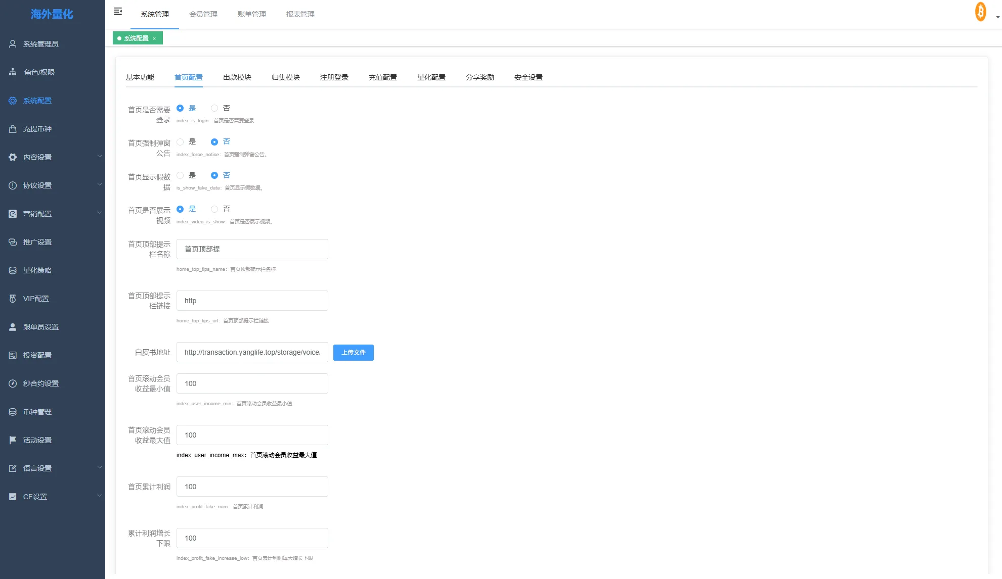 系统功能:秒合约交易,跟单交易,量化交易,Defi投资,三级分销等功能