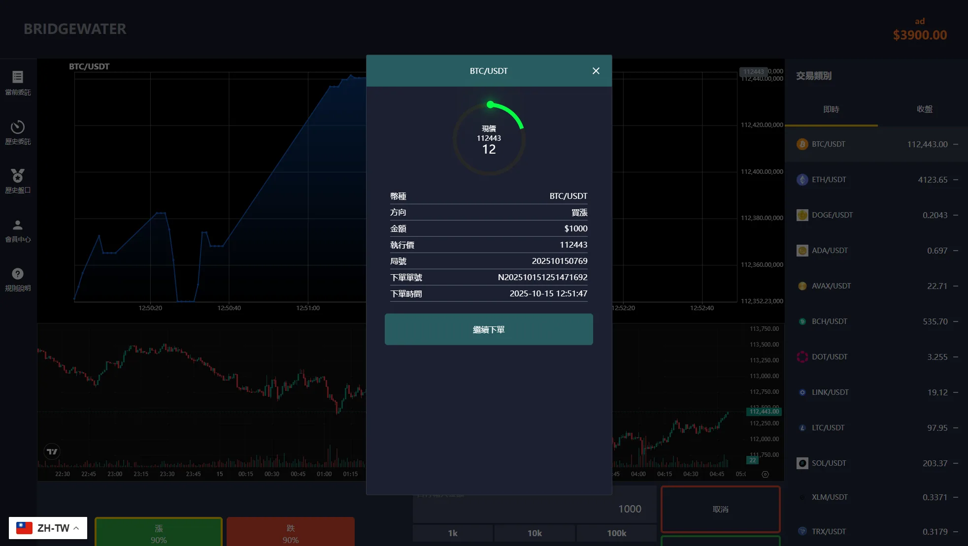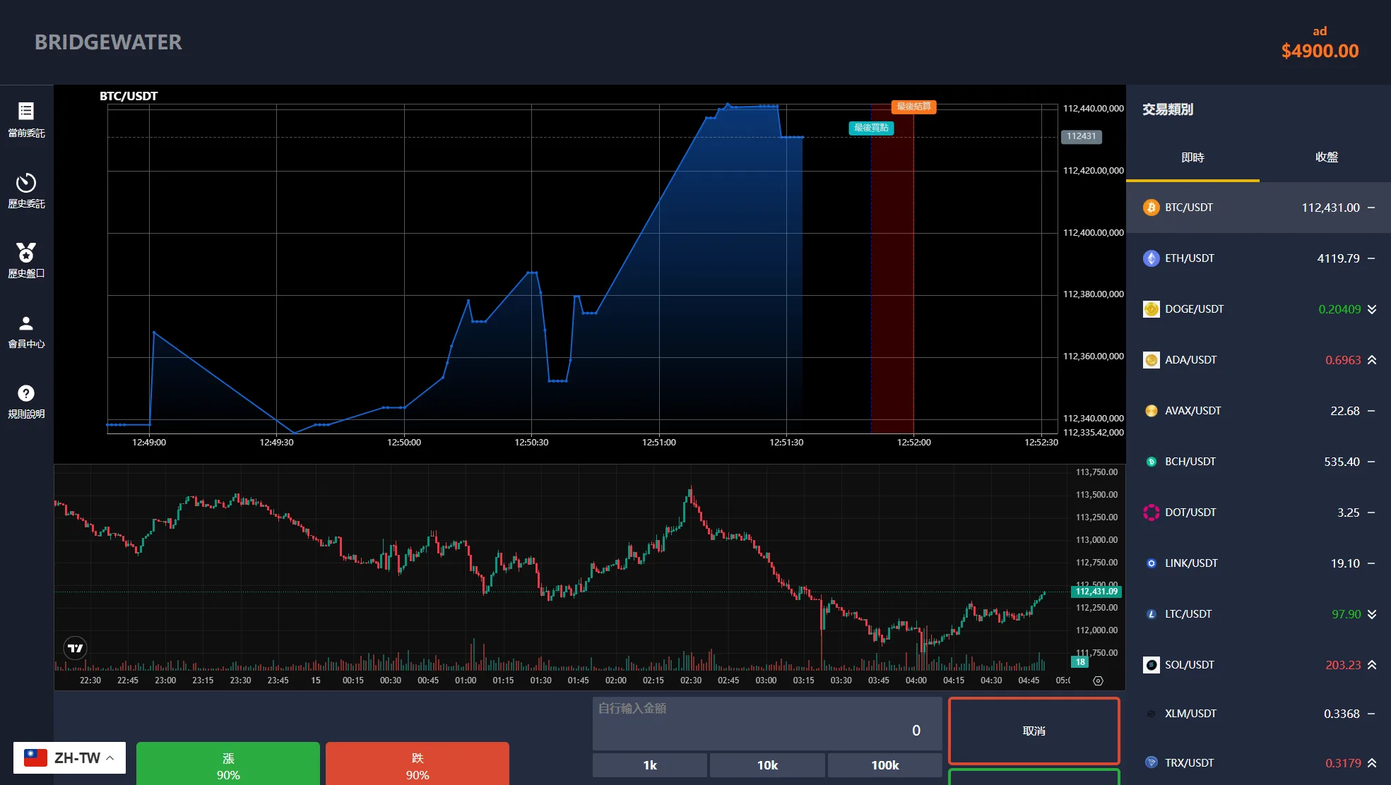 前端基于微交易二开下注竞猜虚拟币K线显示正常 后端基于彩票系统二开彩种都是系统菜,后台可以预设开奖 玩法支持5分钟,10分钟,前端带多语言
