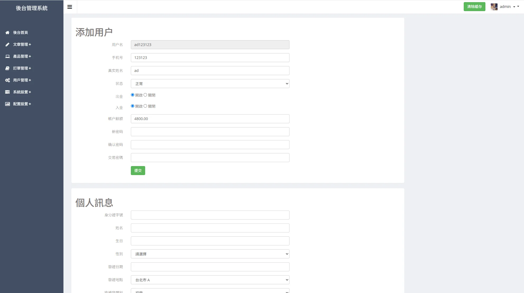 前端自带多语言,产品行情正常,订单控 支持实名认证,USDT跟银行卡提现