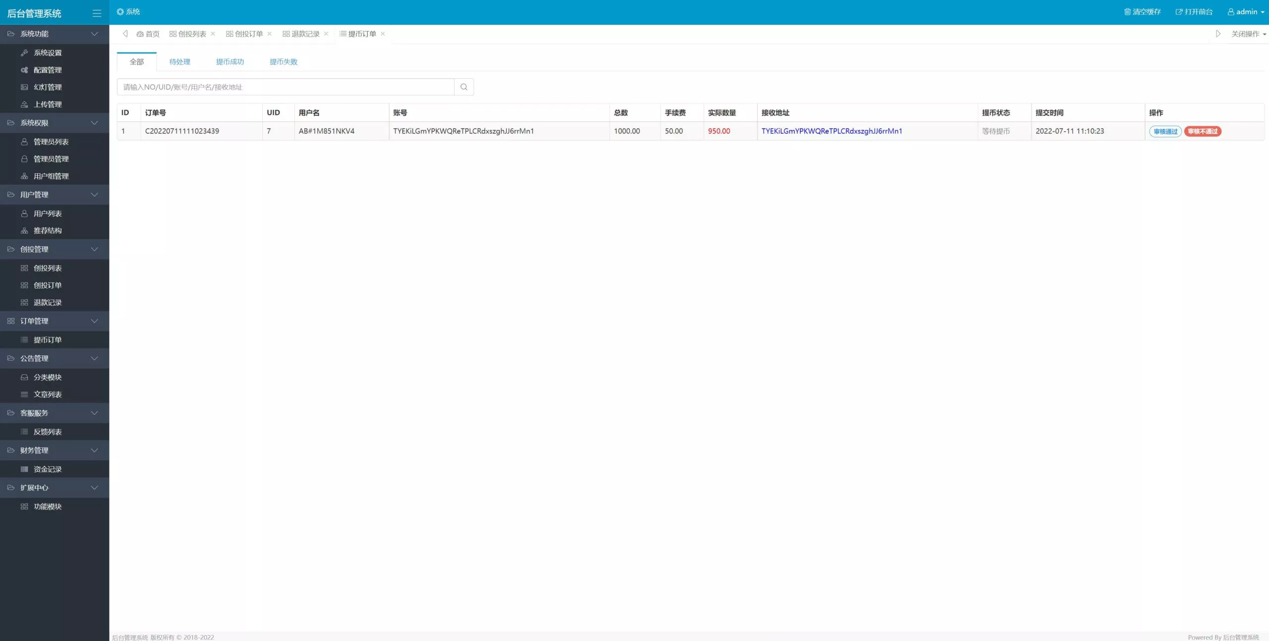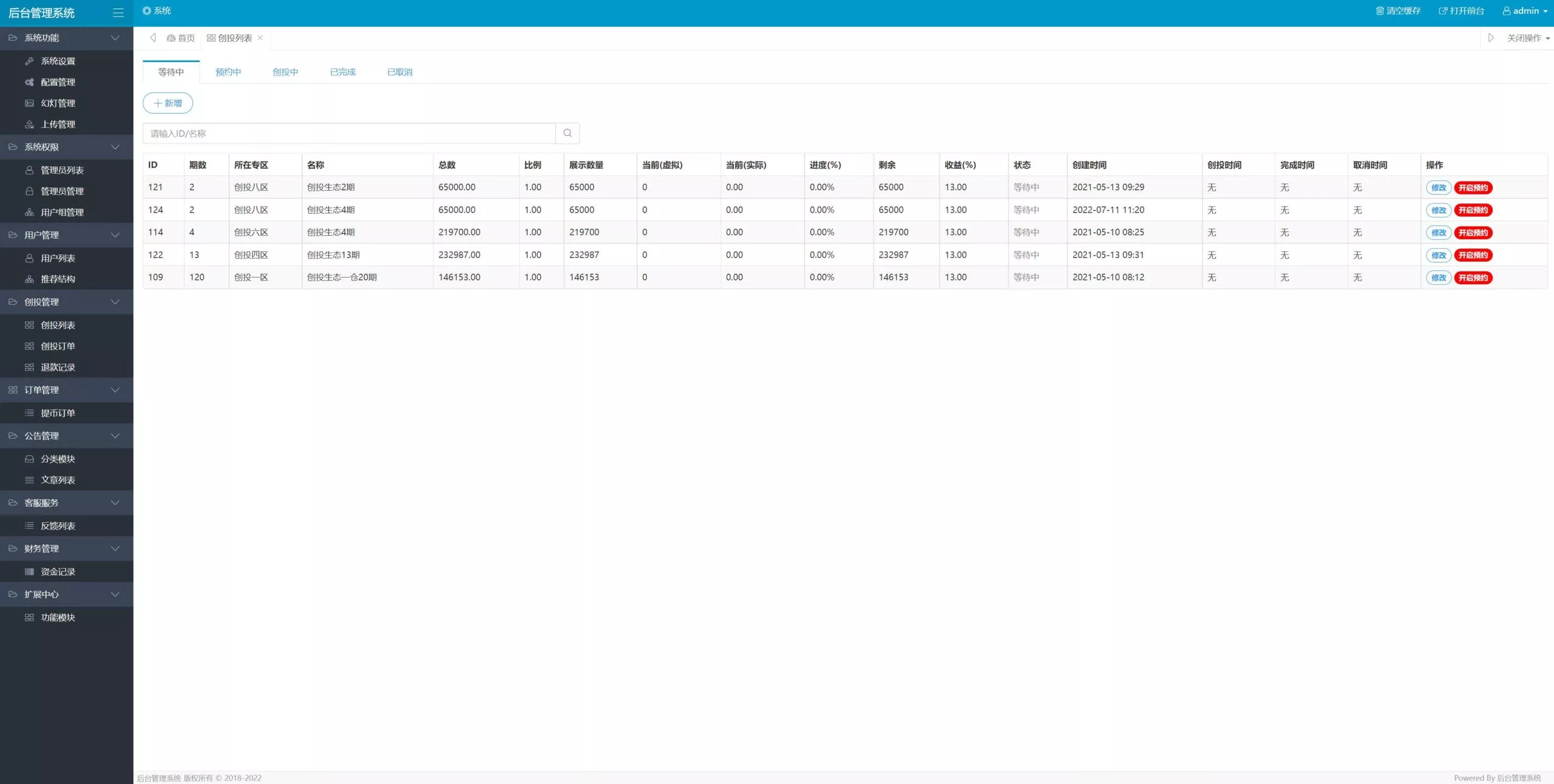 一款usdt众筹投资分红的系统,支持发布多期众筹,步骤分为预约中-创投中-已完成