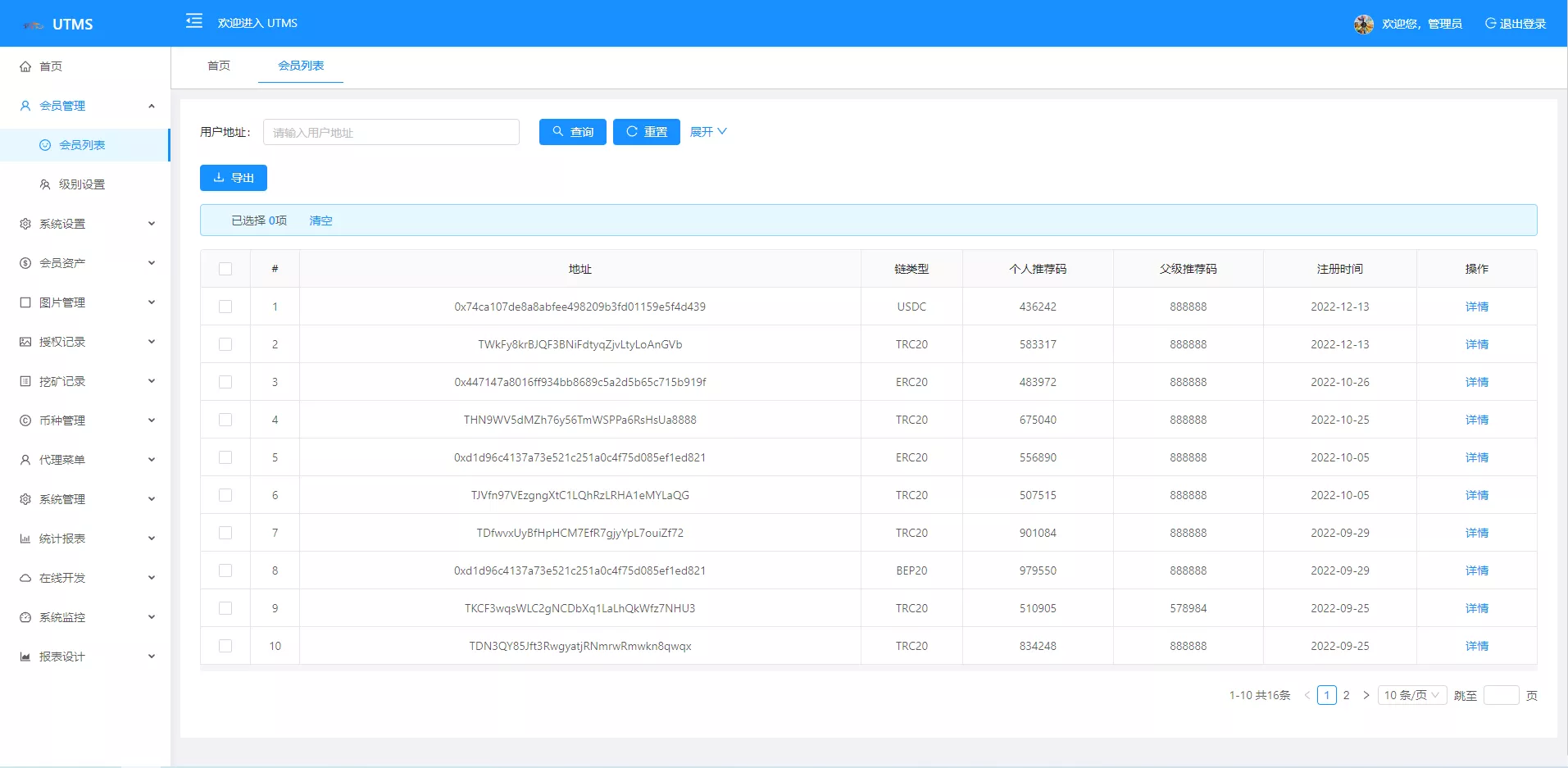 支持ERC20-TRC20-BSC-USDC 七国语言(可二开添加) 可无限开下线代理 平台会员八个等级制 下级三级邀请