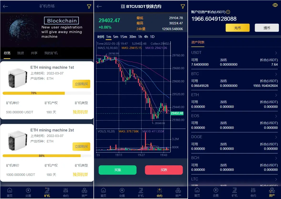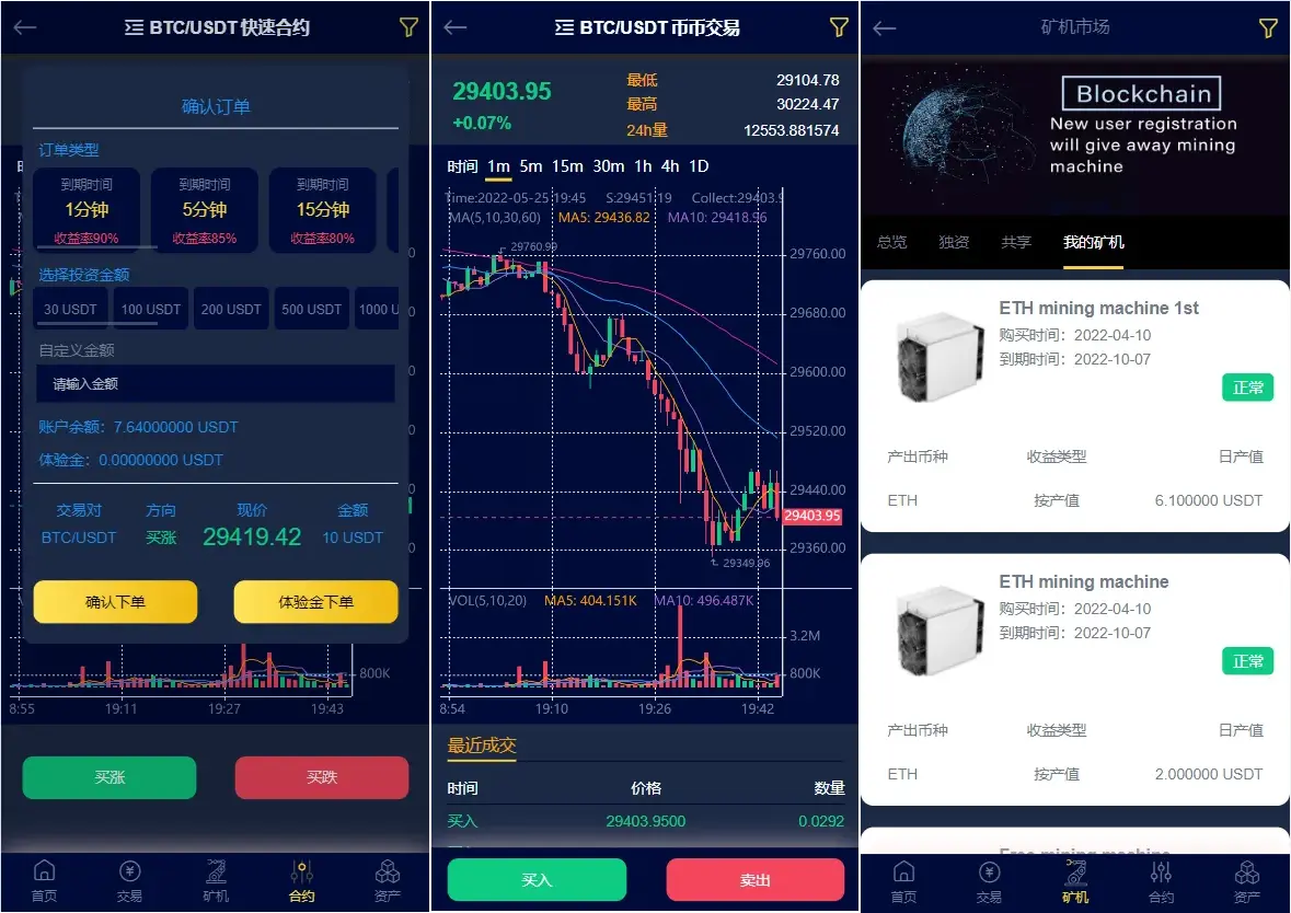 二开优化版区块链交易所/时间盘矿机系统/智能挖矿/币币合约交易