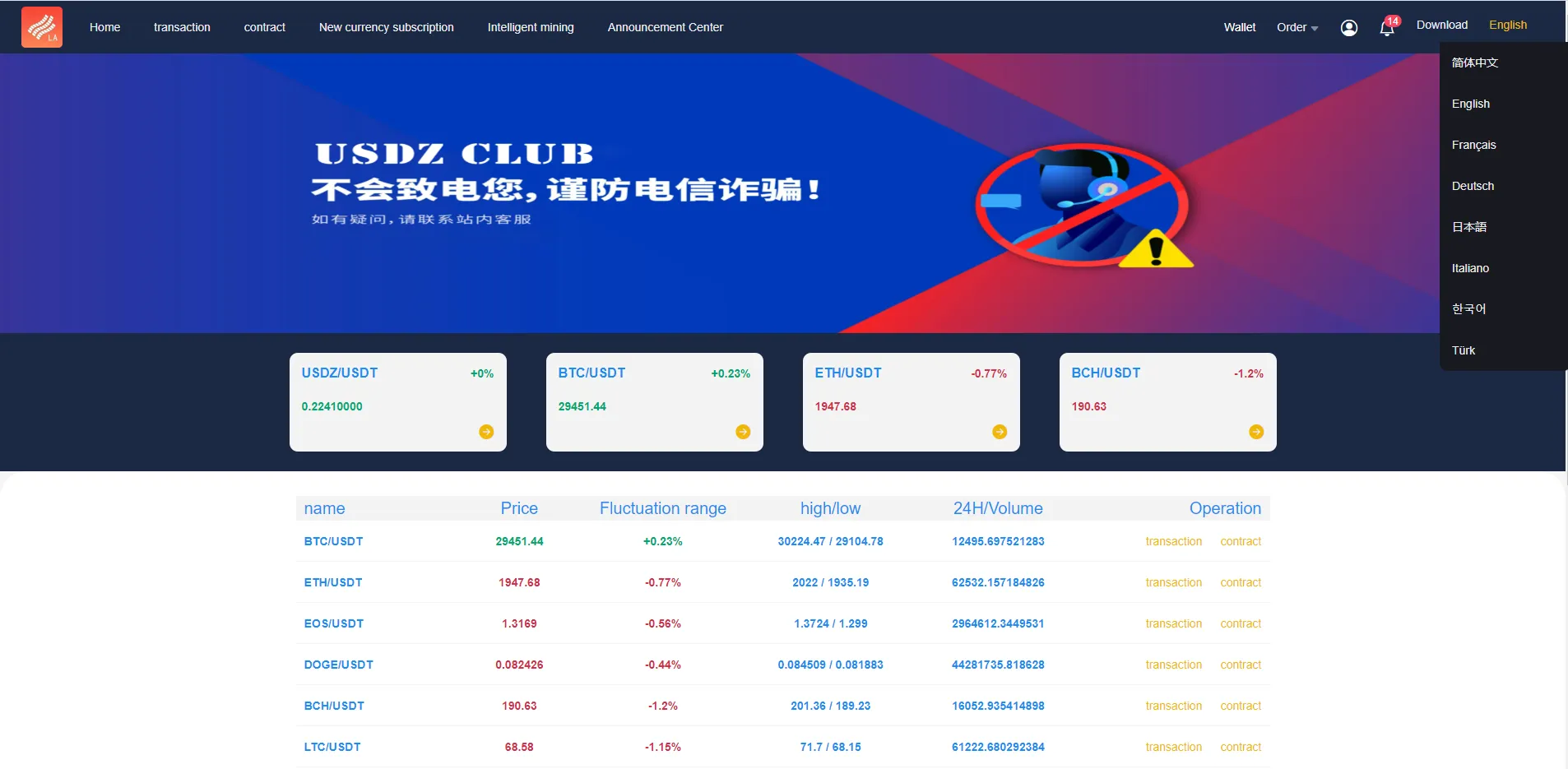 修复K线失效问题,系统8种语言,支持币币合约交易、新币申购、智能挖矿等功能