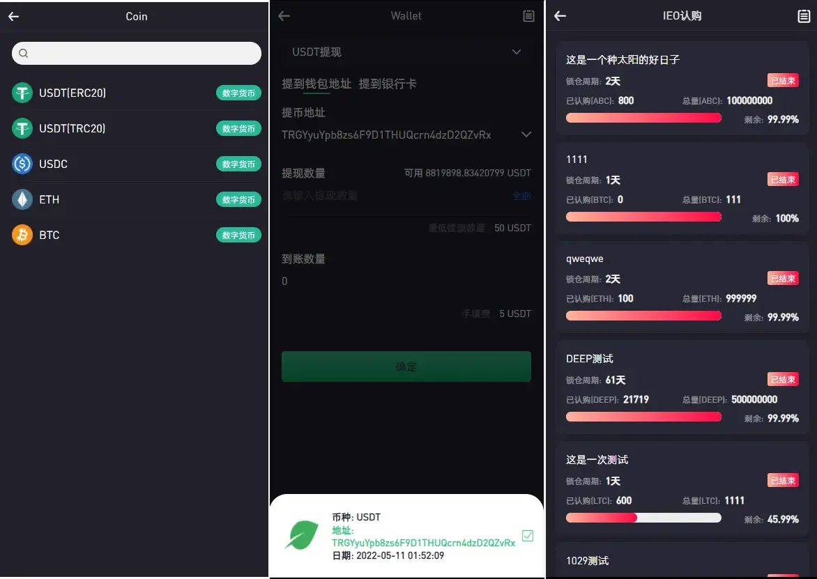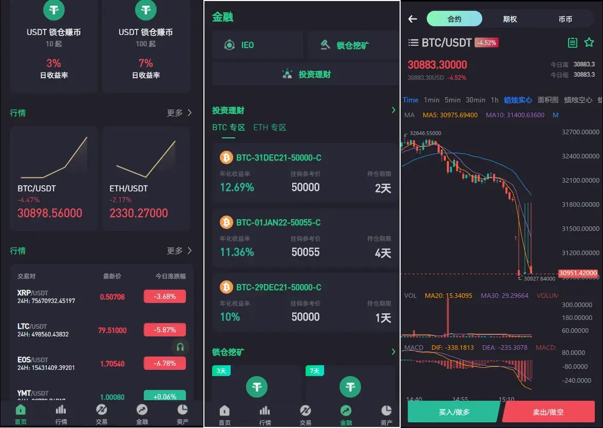 二开优化版区块链交易所/时间盘矿机系统/智能挖矿/币币合约交易 系统基于原版改黑色UI,优化访问速度 修复K线失效问题,系统8种语言,支持币币合约交易、新币申购...
