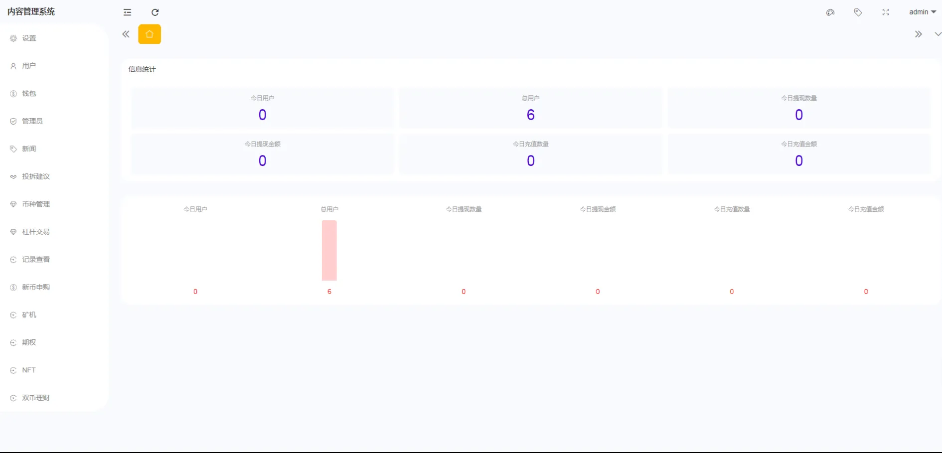 系统为海外开发的交易所系统,支持行情实时展示交易,后台附带计划执行任务 支持多国语言,系统无汉语,需要自行汉化,系统全局自适应